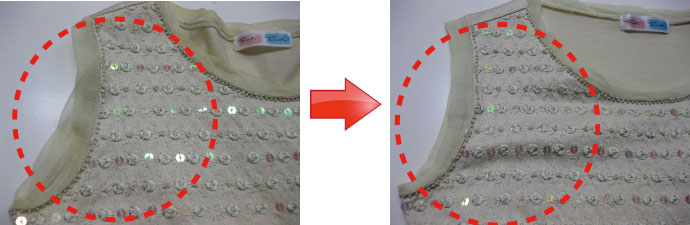 『シミ抜き復元加工』酵素や漂白剤、溶剤などを使いシミを落とし
